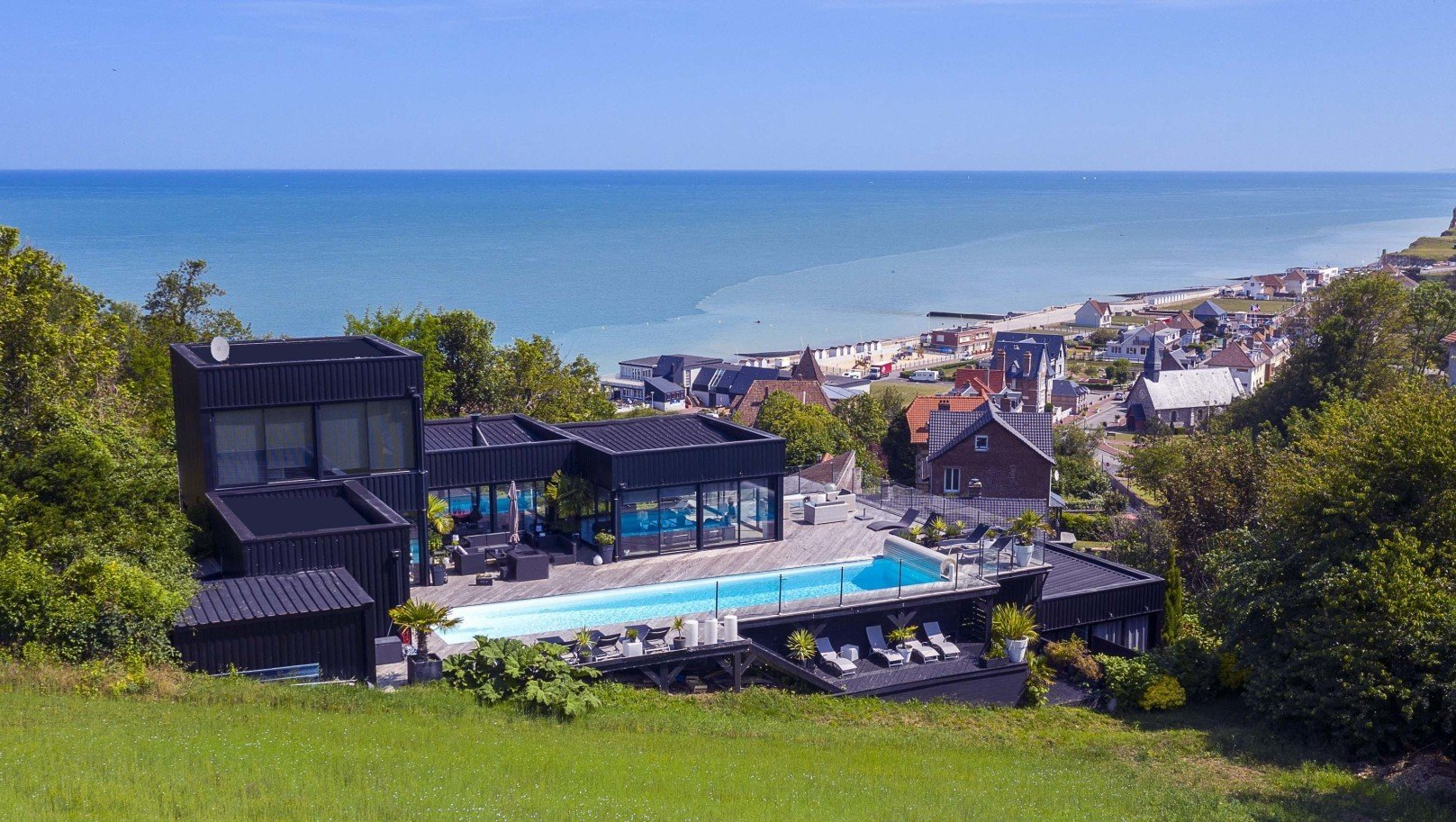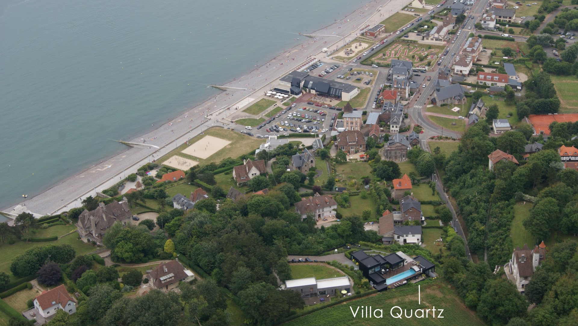 Die am Südhang von Pourville-sur-Mer erbaute Residenz Villa Quartz wurde 2009 nach einjähriger Bauzeit fertiggestellt. Es liegt 200 Meter vom Meer entfernt.Eine futuristische und einzigartige Architektur an der Alabasterküste, schwarz und transparent, aus Glas und Stahl, entworfen von Eric-Pascal Legris, Architekt und Designer.Seit Juli 2009 verfügt es über 5 prächtige Lodge-Lodges, die in modernem Design eingerichtet sind und alle durch große Erkerfenster einen außergewöhnlichen Panoramablick auf das Meer und die Klippen bieten: die Lodge-Lodges Quartz, White, Cristal und Rouge. und Blue, eine Serie... rund um die mineralische Symphonie des Quarzes, die Energie anregt und Ihnen hilft, neue Energie zu tanken... vor dem Meer und dem Horizont der Klippen! Ab 2024 wird das Angebot durch die Vermietung des bisher privaten Teils „Villa“ der Residenz bereichert: eine neue Unterkunft von 200 m2 mit 100 m2 Südterrasse und Swimmingpool.