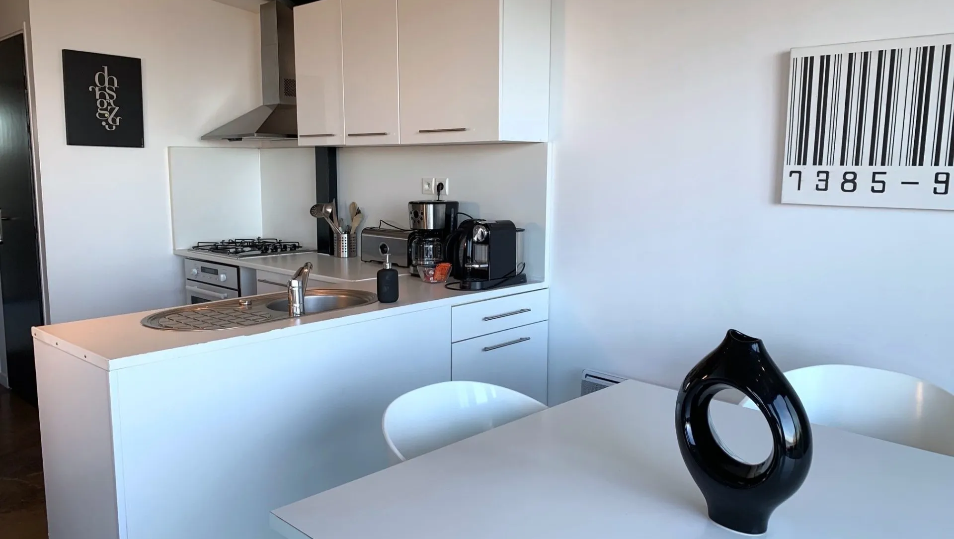 - Voll ausgestattete Küche: Induktionskochfeld, Geschirrspüler, Kühlschrank mit Gefrierfach, klassische Mikrowelle, Nespresso und klassische Kaffeemaschinen, Toaster, Wasserkocher, Küchenutensilien, Geschirr für 12 Personen, 120 x 120 cm großer Tisch für 6 Personen, 6 Stühle.