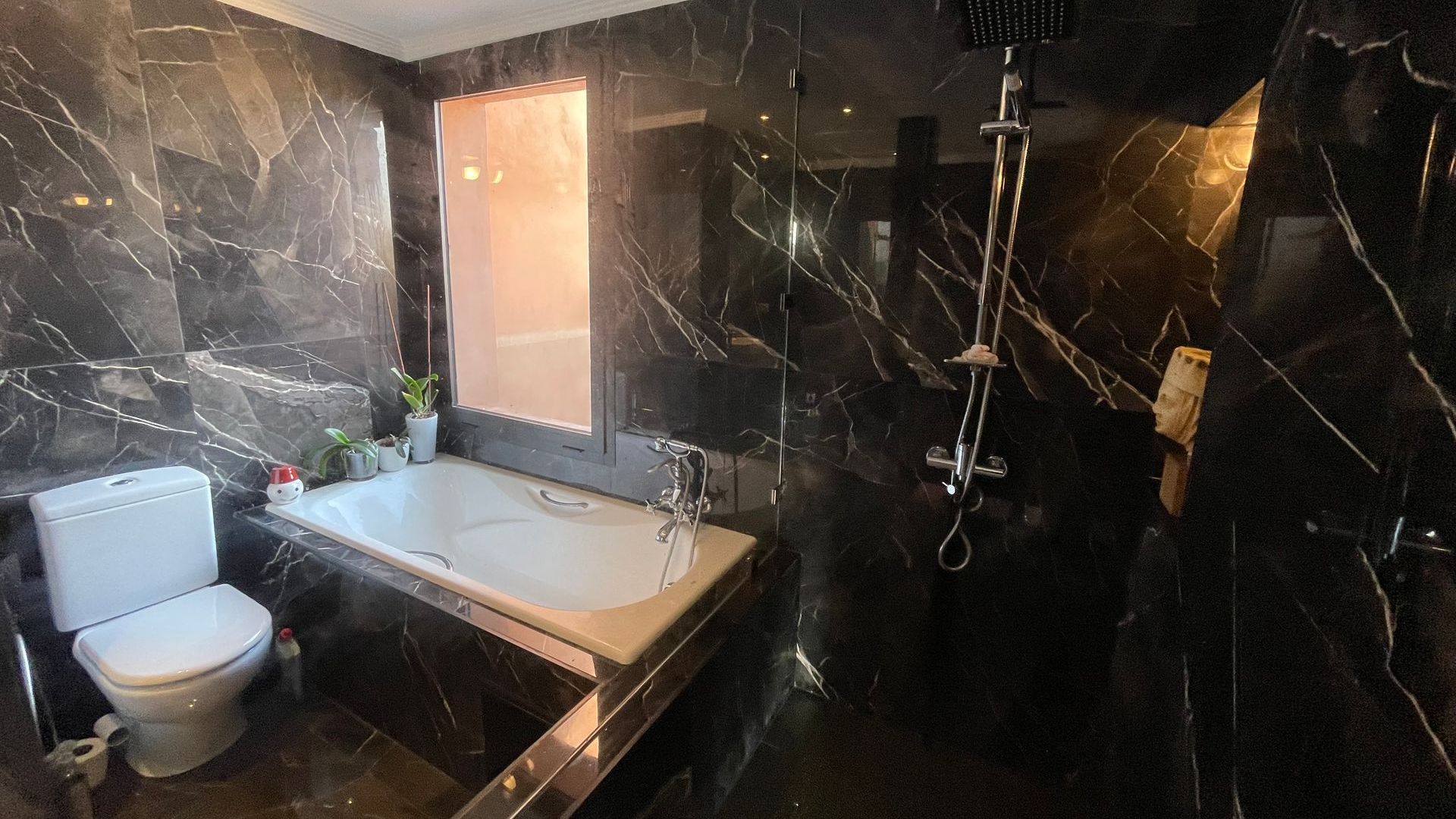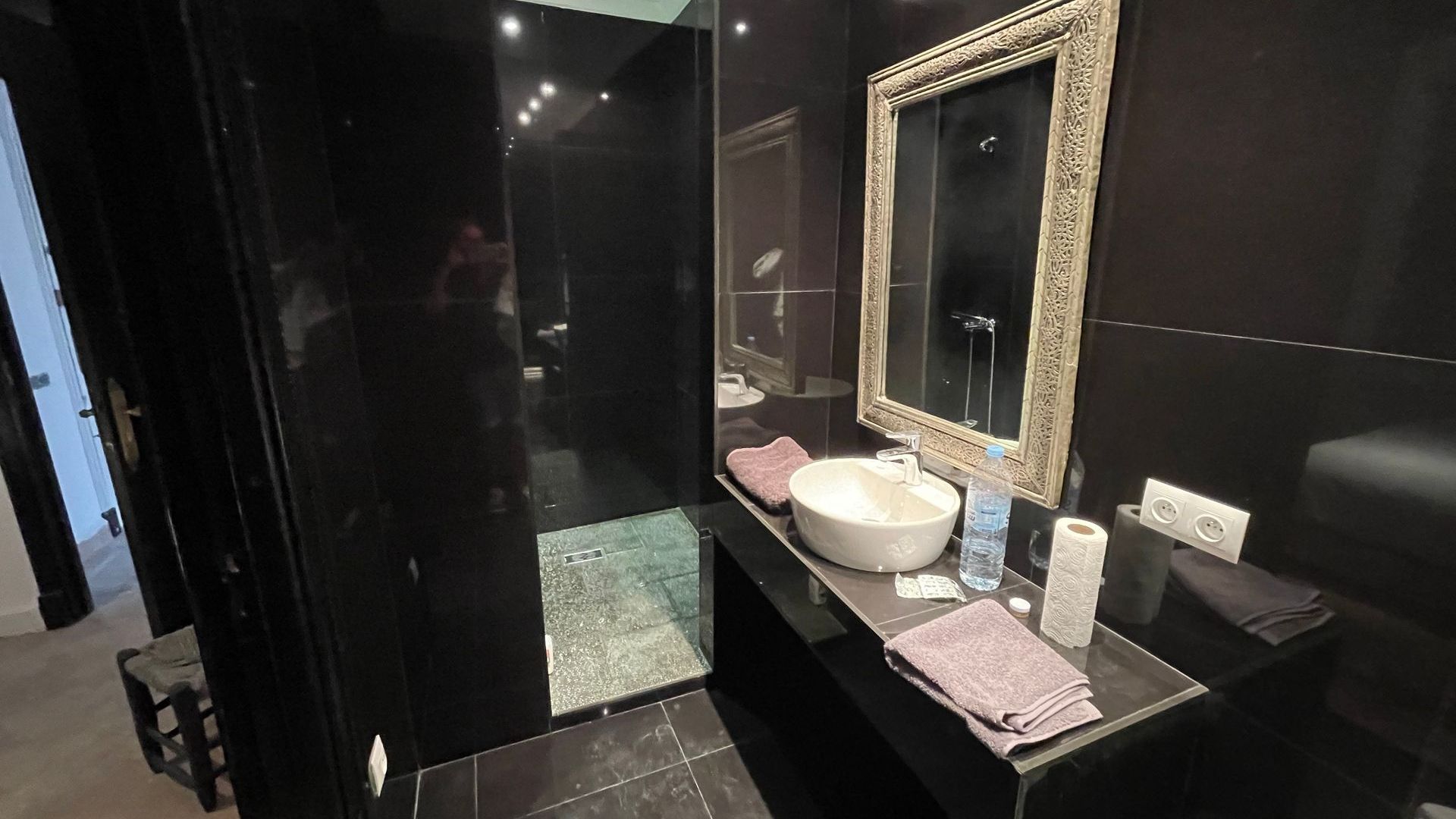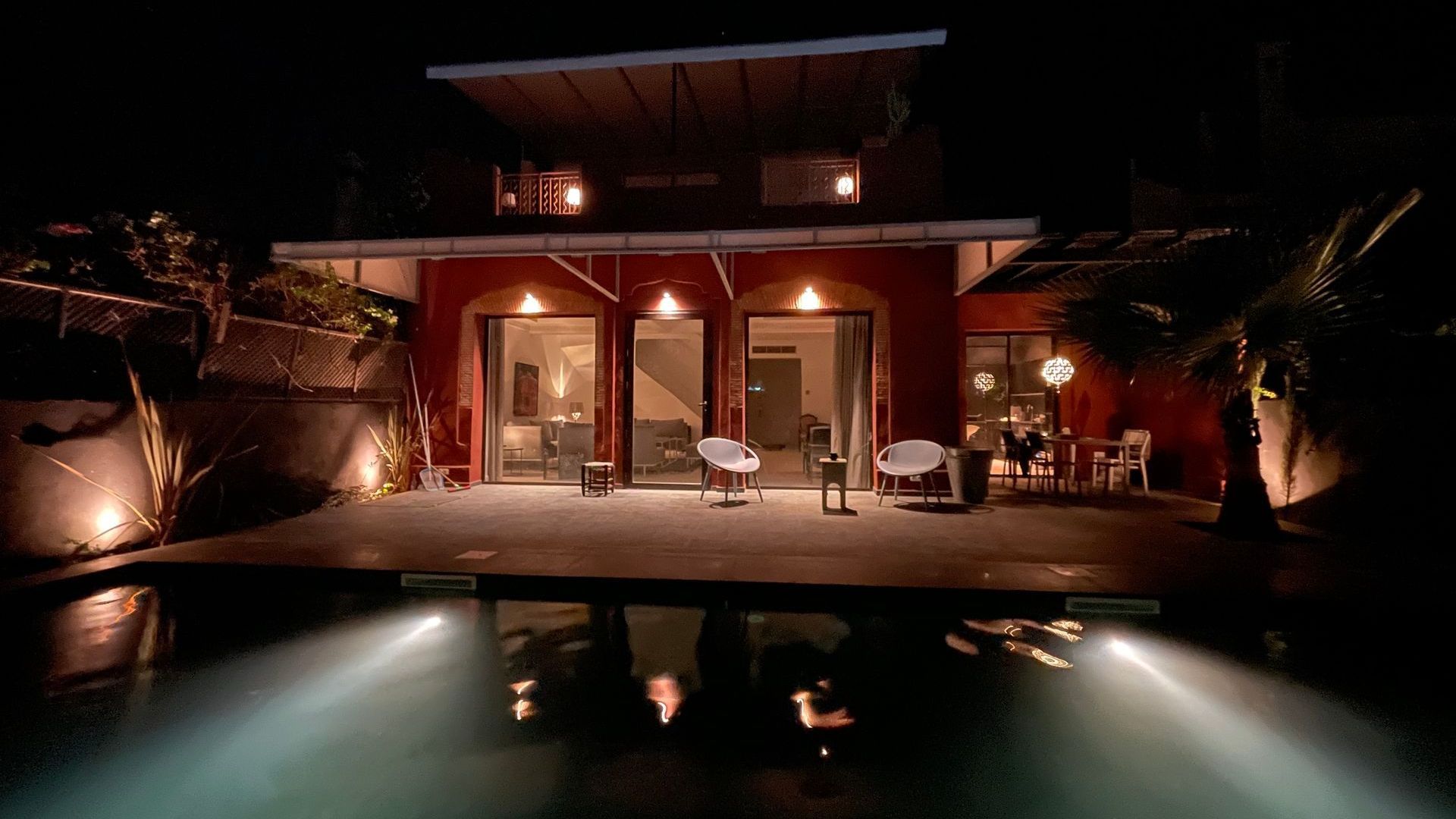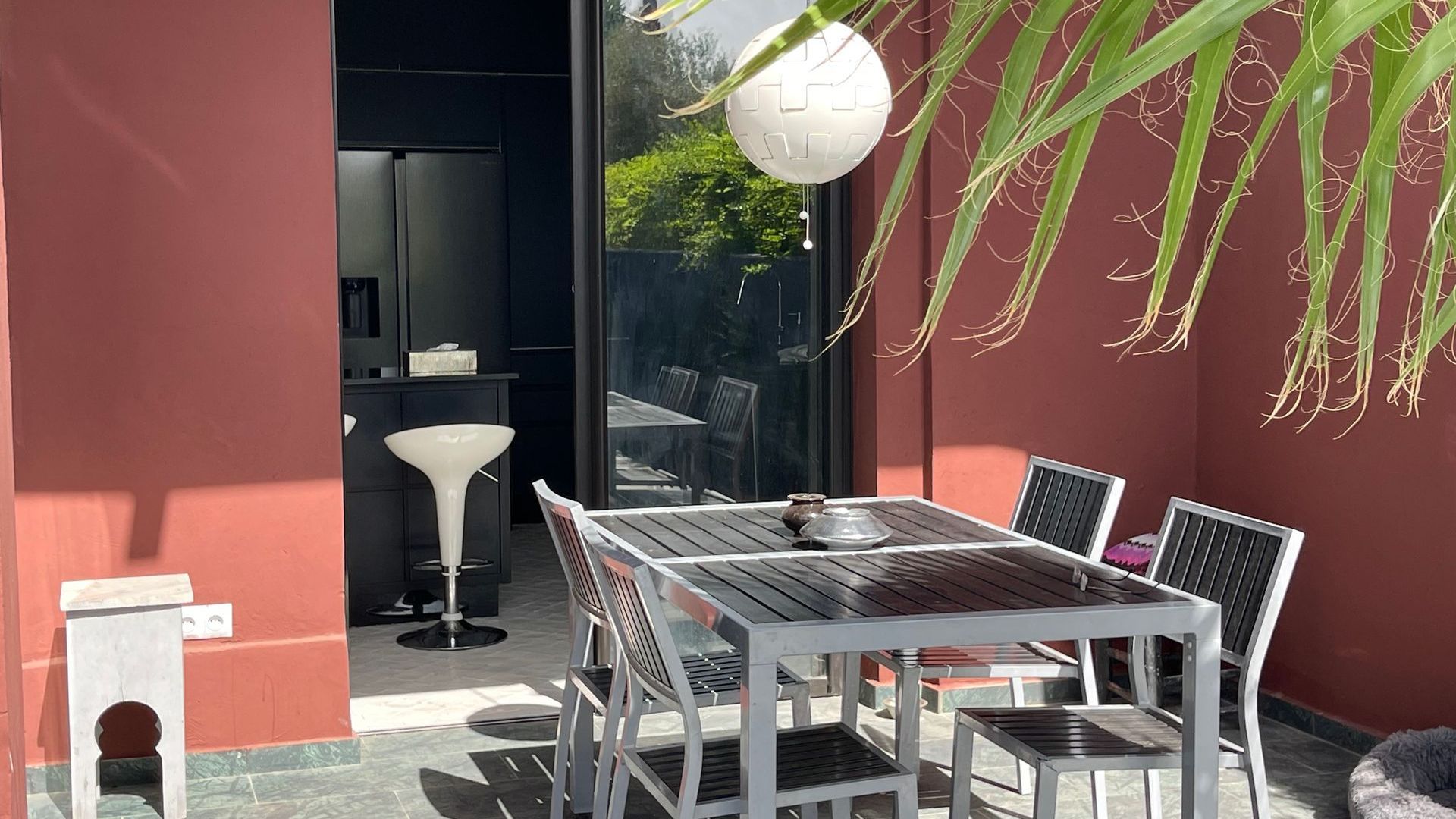 Villa 2A liegt 5 Minuten nördlich von Marrakesch, in einer sehr ruhigen und sicheren Residenz: der Residenz River Palm. Es bietet eine Wohnfläche von 250m2 und eine Gartenterrasse von 150m2 mit einem großen Swimmingpool (10mX3,50m). SDas geräumige Wohnzimmer (80 m²), hell und komfortabel (Wohnzimmer, Kamin, angeschlossener Fernseher, Lautsprecher), ist durch große Erkerfenster zum Pool hin offen. Es bietet bequem Platz für bis zu 6 Personen in seinen drei Schlafzimmern, von denen jedes über ein eigenes Badezimmer mit Dusche und Toilette verfügt: eine 35 m² große Schlafzimmersuite im Obergeschoss, die sich auf eine große Terrasse öffnet, und zwei 15 m² große Schlafzimmer im Erdgeschoss. Die Küche der Villa ist komplett ausgestattet (Öfen, Geschirrspüler, amerikanischer Kühlschrank, Geräte usw.). Im Obergeschoss ermöglicht Ihnen eine ausgestattete Panoramaterrasse, den Atlas am Horizont zu entdecken, mit einem magischen und entspannenden Blick auf die luxuriösen Gärten der Residenz.