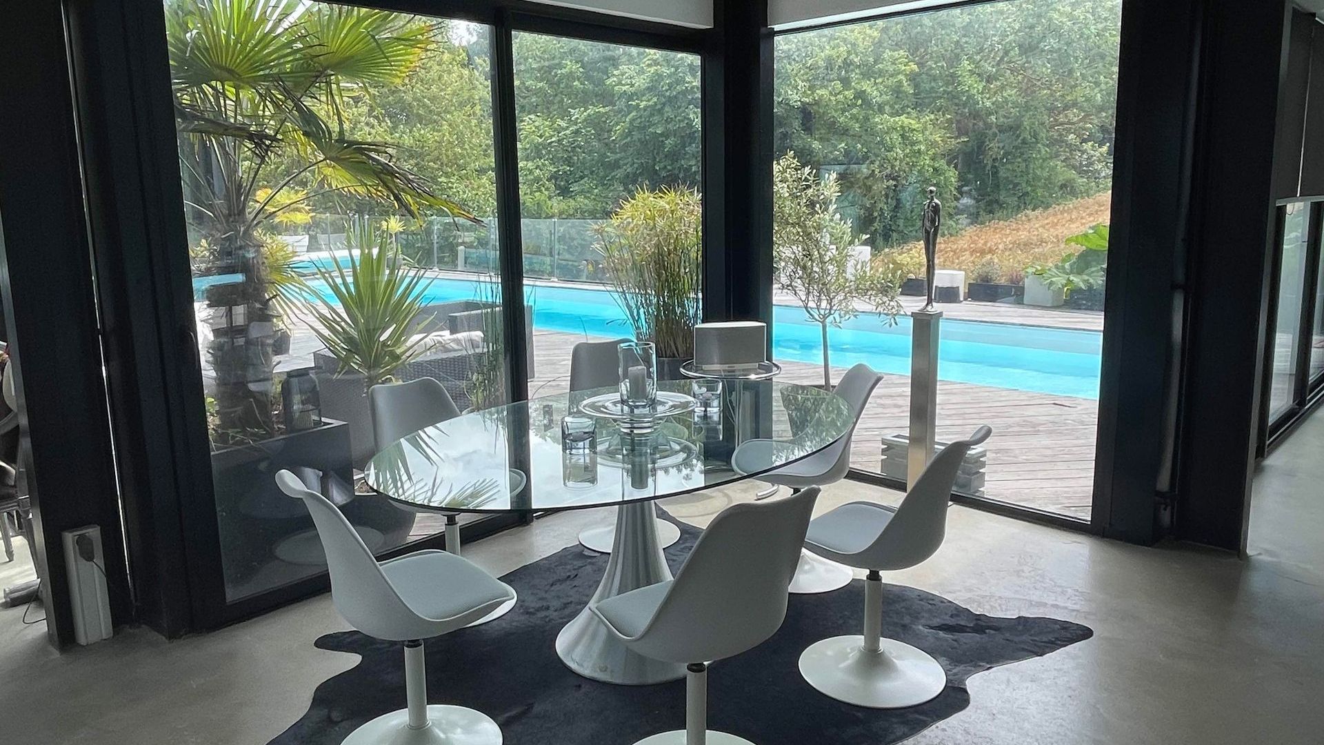 Uno spazio abitativo di oltre 450 mq: la Villa (200 mq) e la terrazza panoramica (250 mq) esposta a sud con la sua piscina 16 x 3,50 mt, la pool house e i salotti esterni.
