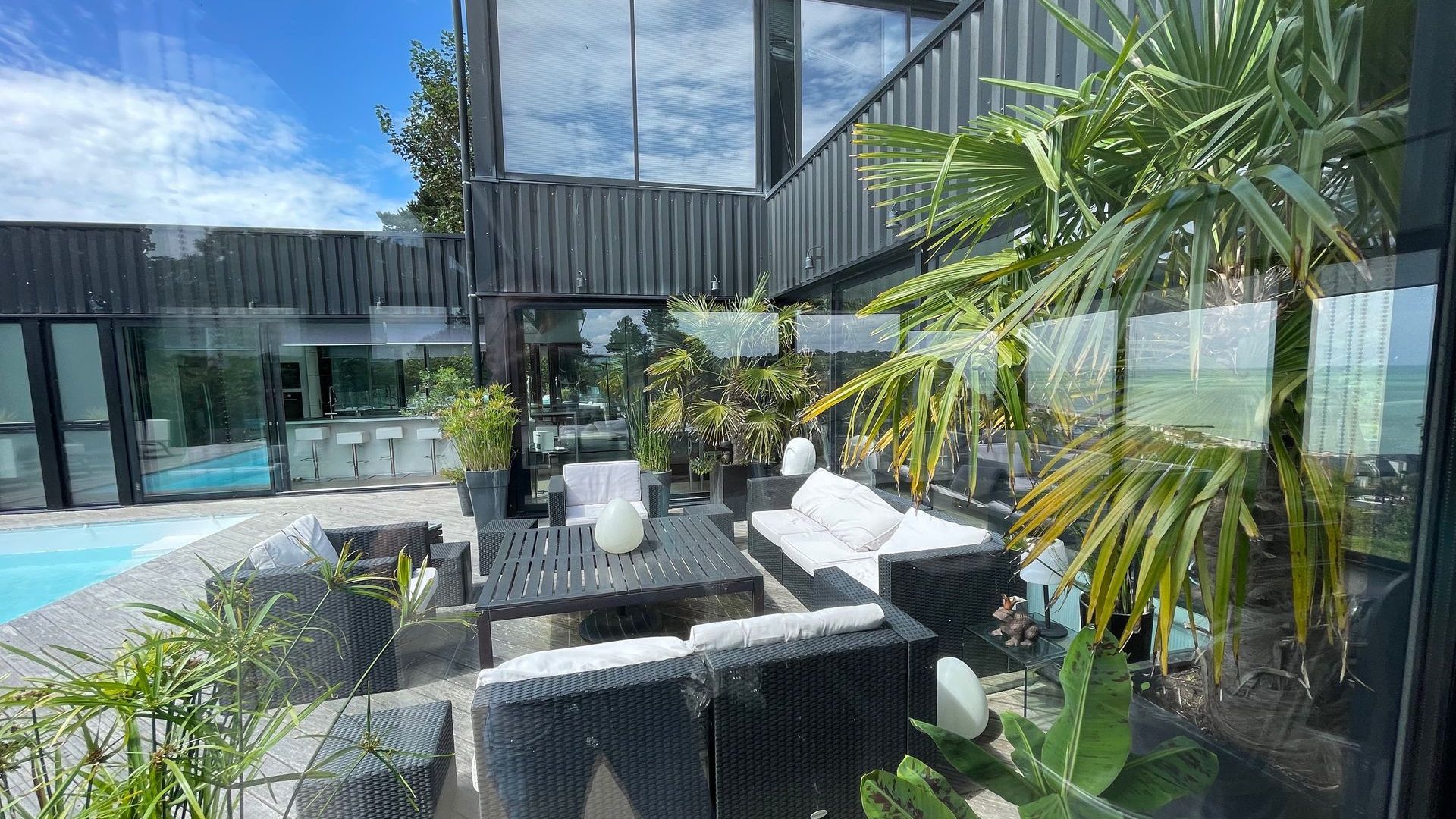 Depuis 2024, la VILLA, partie haute de la résidence Quartz située à l'étage au dessus des Lodges, a été ouverte à la location saisonnière : un espace habitable de 210 m2 pour 6 personnes avec piscine, terrasse de 250 m2, et une vue panoramique exceptionnelle sur la mer, la plage de Pourville et les falaises. La villa est composée d'un grand plateau central "esprit loft" comportant un séjour de 100 m2 avec 2 salons, une cuisine de 22m2 toute équipée, ainsi que 3 chambres de 36m2, dont une à l'étage et deux autres en rez-de-jardin, avec leurs 3 salles de bains (douches et wc). Terrasse de 250 m2 plein Sud avec une piscine de 16mX3,50m chauffée d'avril à octobre, des salons outdoor, transats et parasols, et un poolhouse. L'accès à la piscine et à la terrasse est exclusivement privé et réservé aux locataires de cette Villa. De ce fait, la piscine n'est plus accessible aux locataires des 5 Lodges, contrairement aux années précédentes. La Villa peut être louée selon 2 formats optionnels : dans son intégralité avec es 3 chambres pour 5 à 6 personnes, ou avec seulement 2 chambres pour 1 à 4 personnes.