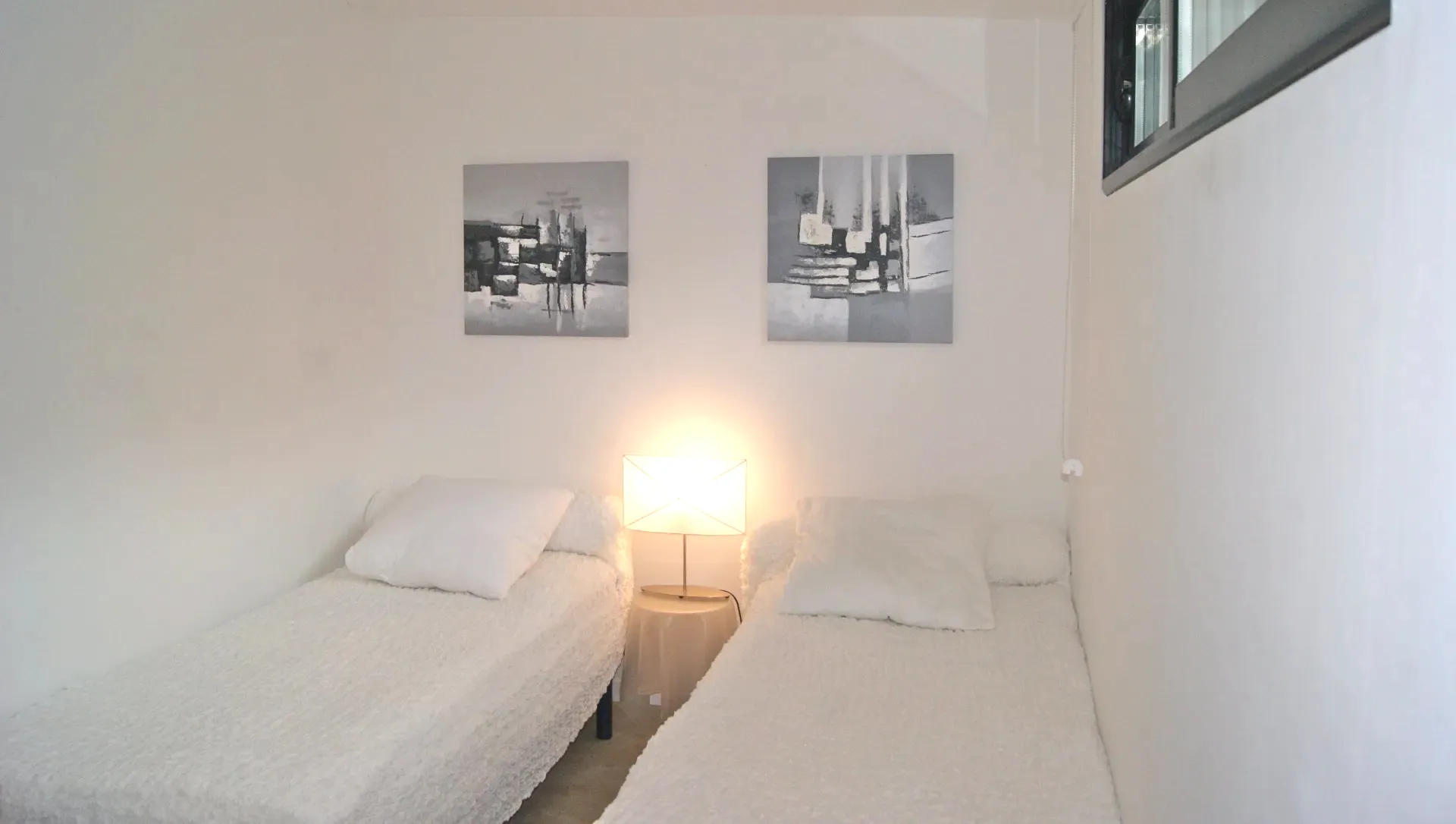 - Slaapkamer n ° 2 (Twins): 2 eenpersoonsbedden 90x200cm, kast, tv, dvd-speler, verduisterende rolgordijnen.